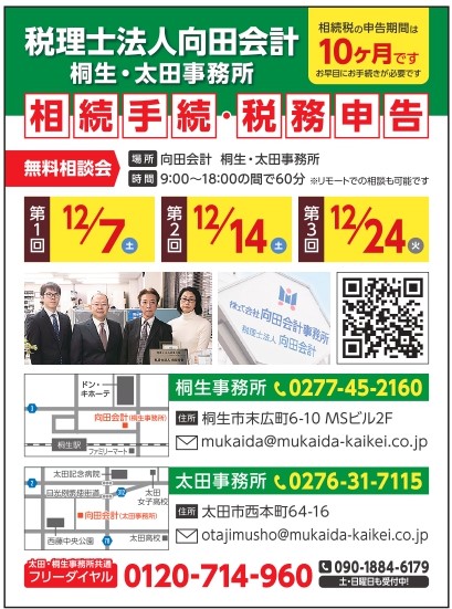モテコ12月号に相続・税務申告無料相談会の紹介を掲載させていただきました。 第1回 12月7日(土) 第2回 12月14日(土) 第3回 12月24日(火) ※上記日程以外のご相談も受け付けております。お気軽にお電話・メールにてお問い合わせください。